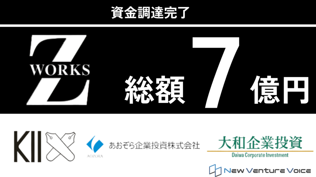 Z-Worksは、株式会社慶應イノベーション・イニシアティブと大和企業投資株式会社を引受先とする第三者割当増資、並びにあおぞら企業投資株式会社を引受先とするベンチャーデットファイナンスを組み合わせることで、総額7億円の資金調達を完了しました。
