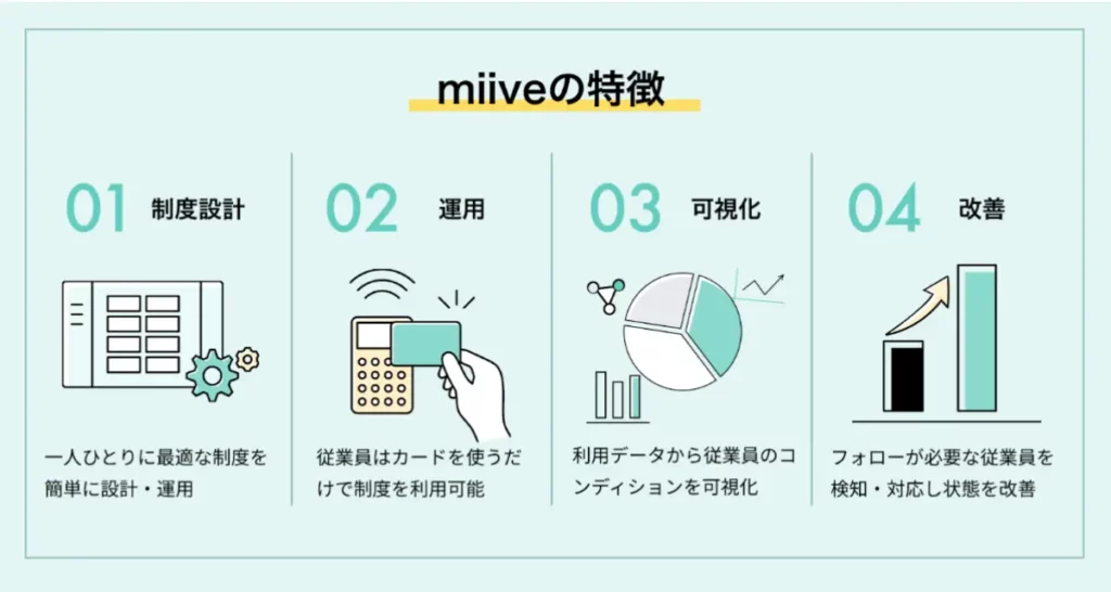 株式会社miiveが提供する「miive」は、Visaカード1枚とスマホアプリを使って、企業の福利厚生を一元運用できるプラットフォームで、2021年にリリースされました。
