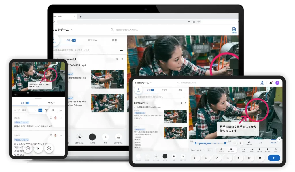 従来、マニュアル作成には膨大な時間と工数がかかり、特に多言語対応では翻訳作業が大きな負担でした。TAGURUは、この課題を解決するために、動画を撮影した後に、AIが音声や動作を解析し、マニュアルを自動で生成します。この技術により、マニュアル作成の手間を最大40%削減し、従業員の教育やトレーニングを加速させます。