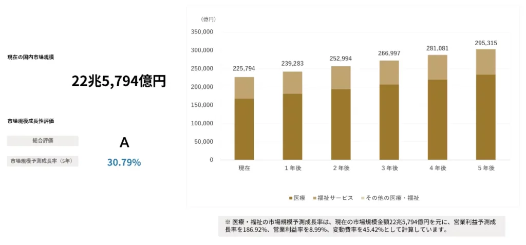 国内の医療・福祉業界の市場規模は、2024年時点で約22.6兆円と推計されており、2030年には約29.5兆円(約30.8%増)に達すると予測されています 1 。この巨大な市場において、最大のボトルネックとなっているのが「人材の質と量」です。