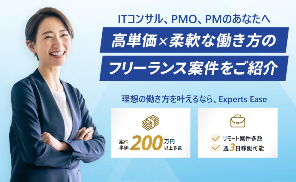 👉 月額200万超・週3日/副業案件多数!「Experts Ease」無料登録はこちら