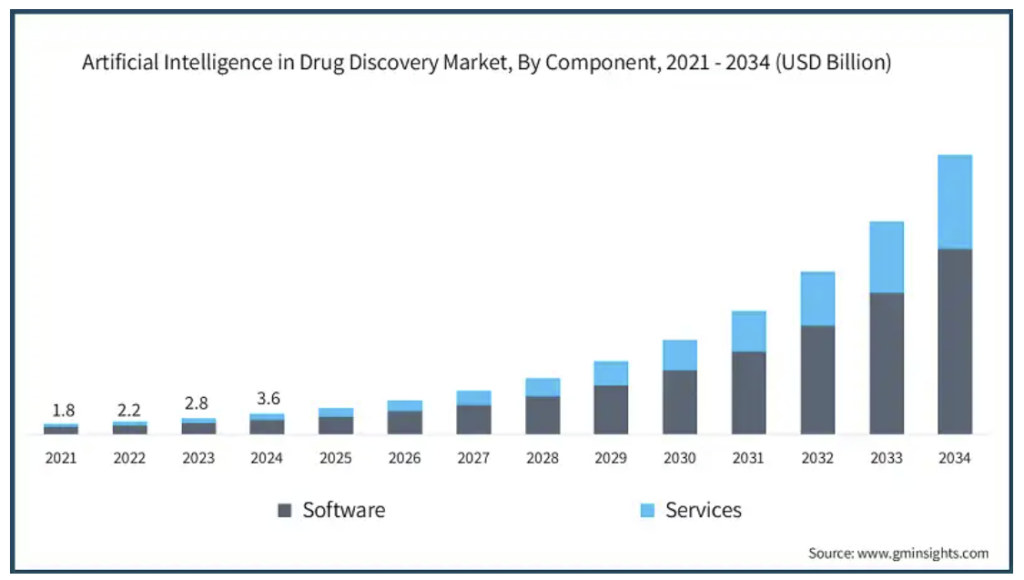 AIを駆使した創薬支援技術の市場は急速に拡大しています。特に、 CAGRで24%以上の成長 が予測されるなど、急成長する分野です。